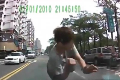 A videón látható fiatal srác alighanem jobban tette volna, ha az amúgy ügyes mutatványa előtt körbe is néz. Csak a szerencsének köszönhette, hogy szemlátomást sérülés nélkül megúszta az incidenst.