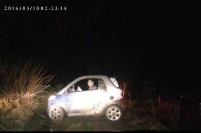 A nő kiszállás után elfelejtette behúzni a kéziféket – autója gurulni kezdett hátrafelé. Az egyenruhás őr kézmozdulatokkal kezdte terelgetni, nem tűnt fel neki, hogy nem ülnek benne.