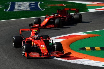 Egy fékhiba és egy baleset miatt féltávnál kettős kieséssel ért véget a Ferrari Olasz Nagydíja. Charles Leclerc-nek kisebb fájdalmai vannak a nagy csattanás miatt, amelyért magára vállalja a felelősséget.