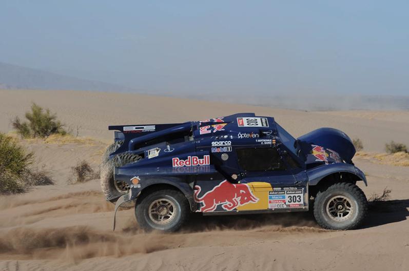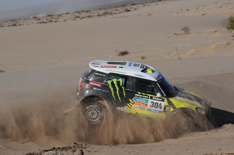 Az autósok között három Mini-pilóta végzett ma az első három helyen. A címvédő Stephane Peterhansel újabb szakaszgyőzelemmel közelített az összetettben éllovas csapattársához, Joan Nani Romához, akin viszont csak 6 és fél percet sikerült hoznia, így több mint fél óra hátránnyal vonul pihenőre a szünnapon. Nasser Al-Attiyah ugyan a remek 2. helyen hozta célba a mai napon a harmadik Minit, ám az ő összetettbeli esélyeinek nem tett jót, hogy még a tegnapi napról beszedett egy egyórás büntetést, mivel Carlos Sainzcal egyetemben kihagyta az egyik kötelező ellenőrzőpontot. A katari így jelenleg 1 óra és 22 perc hátránnyal az 5., míg a spanyol buggys majd két óra hátránnyal a 6. az összetettben, vagyis egy kisebb csoda kéne ahhoz, hogy valamelyikük nyerje a versenyt.
