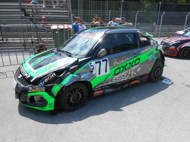 A tizenkettedik körben aztán váratlan esemény történt. Fekete Balázs a célegyenes végén található sikánt rosszul vette be és a kerékvető úgy eldobta az autóját, hogy az bukfencezni kezdett. Fekete autója keresztül repült a pályán és a szalagkorlát tetején - pontosabban a mögötte lévő hálón - állt meg. Az esetet követően a versenyigazgatóság piros zászlóval - miután a 75%-os versenytáv megtételén túl volt a mezőny - leintette. Fekete Balázs azonban nem szerepelt az értékelt versenyzők között, mivel korai rajtért boxutca áthajtásos büntetést kapott, amit nem töltött le. Ãgy őt már az eset előtt kizárták a versenyből.