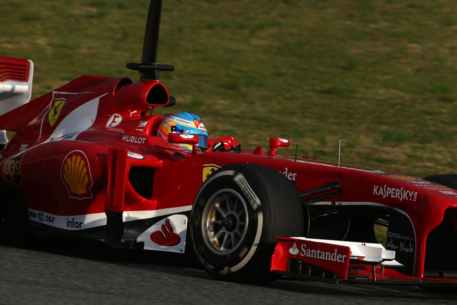 Fernando Alonso a közepes keveréken szintén javított köridején. A Ferrari F138-ban első napját töltő spanyol pilóta 1:22.952-es idővel a harmadik helyen zárta a napot.
