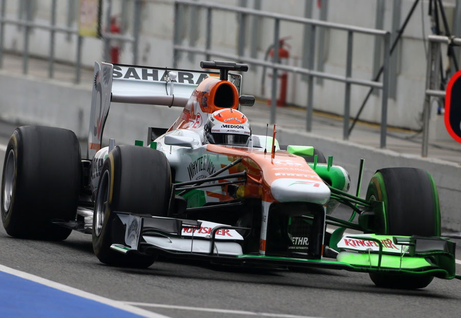 A Red Bullon médium abroncsok vannak, akárcsak a Toro Rosso. Egy óra elteltével a legtöbb kört Webber teljesítette, 13-at és a leggyorsabb is ő volt. A Ferrari a lágy keveréket dobta fel Alonso F138-asára. A spanyol ma tesztel utoljára, holnap Massa váltja a volán mögött. A Mercedesnél Rosberg dolgozik ma, Hamilton épp kutyáját, Roscoe-t sétáltatja a paddockban. Mindenkinek van már mért ideje, kivéve Buttonnak és a visszatérő Sutilnak.