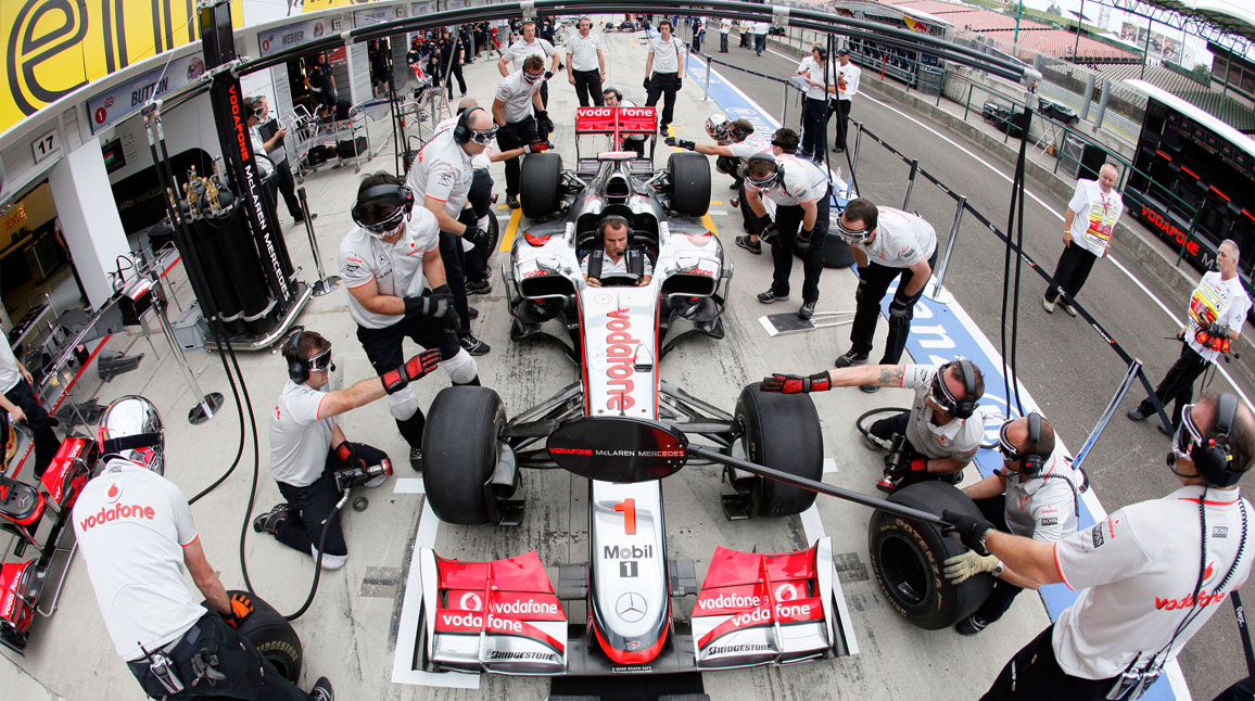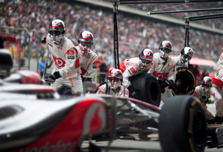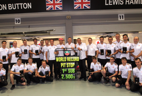 2012-ben nagy elánnal kezdett a Ferrari és lepipáltaellenfeleit a garázs előtt. Ebbe a Red Bull persze nem nyugodott bele és ismét karámba zárta az ágaskodó paripát. Ezt a harcot unta meg a McLaren. Valóságos fordulópont volt ez a wokingiak számára az év eleji munkájukhoz képest, amikor hibát hibára halmoztak a kiállások során, dekoncentráltak voltak és számos pontjuk úszott el a kerékcserék során. Az persze már akkor is tény volt, hogy amennyiben jól végzik a munkájukat, akkor viszont nagyon jól. A McLaren elemezte a gondokat és egy-két esetben a felszerelés hibásodott meg, viszont több alkalommal az ujjak remegtek meg, ezen változtatni kellett. Ha a régi felszerelés nem jó, vállalni kell a kockázatot és újat kipróbálni. A jó teljesítmény és a gyakorlás végül Németországban csúcsosodott ki, amikor Jenson Button kerékcseréje mindössze 2,31 század másodpercet vett igénybe. Ez új, nem hivatalos világrekord lett és ami még fontosabb, pozíciószerzést jelentett a brit pilótának, aki ennek köszönhetően tudta megelőzni a Red Bullt és Sebastian Vettelt. Egy dolog, hogy sikeres kiállást produkál a gárda, de megint egy másik, ha ezzel előrébb juttatják a pilótát.