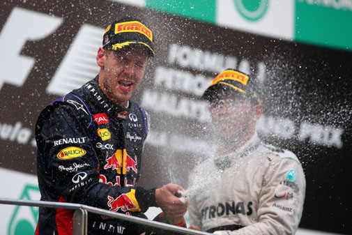 A vasárnapi Maláj Nagydíjon Webber a hatodik körben állt az élre, a háromszoros világbajnok Sebastian Vettel a Red Bullt folyamatosan arra kérte, csapattársát utasítsák arra, hogy elengedje őt. De a felső vezetés arra utasította Vettelt, hogy maradjon Webber mögött. A német pilóta azonban a kerékcserék utolsó köre után megelőzte Webbert.