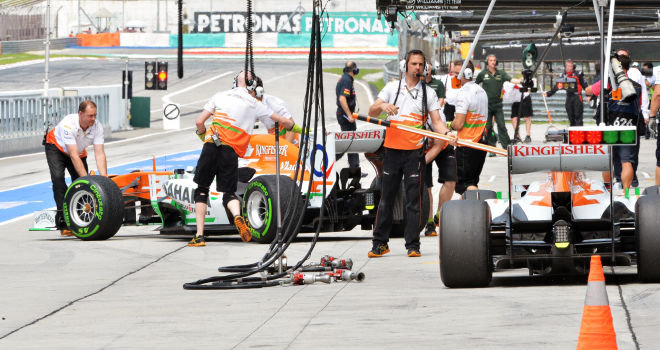A csapat tehát inkább visszavonulót fújt, de utóbb elmondták,nem cserélik re a most rosszul működő rendszert, amelyet Ausztráliában használtak először, igaz, ott jóval alacsonyabb volt a hőmérséklet, mint Malajziában. "Nem térünk vissza a régi darabhoz. Nem haladhatunk visszafelé. Meg kell találni a hibát, ki kell javítani és folytatni a fejlődést. Ma már mindenki 4 másodpercen belül kcserél kereket. Ha visszatérünk a régi rendszerhez, mi még lassabbak leszünk 4 másodperccel" - mondta el Bob Fernley, a Force India helyettes csapatfőnöke.