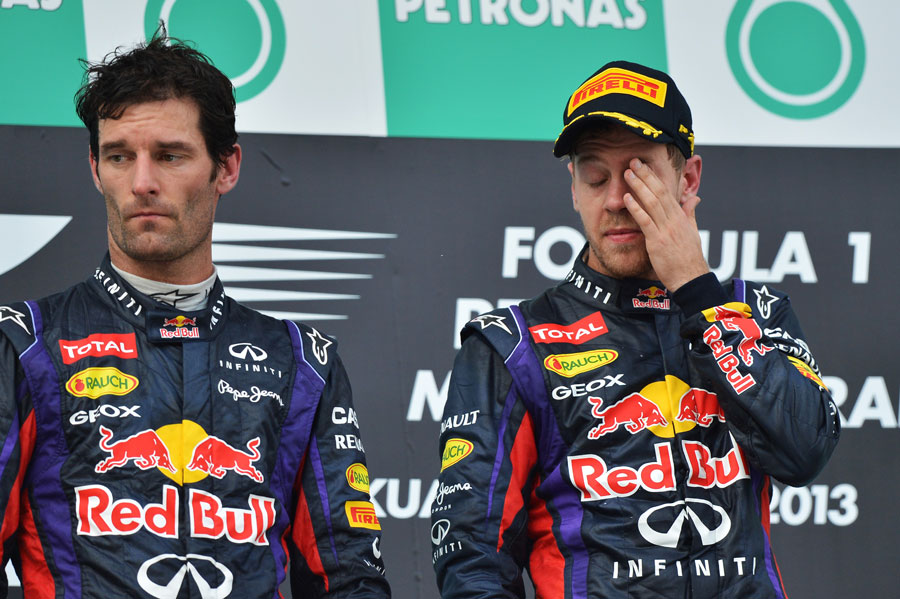 "Nem gondolom, hogy Sebastian azt hiszi, ő irányítja a csapatot. Tudja, hogy mi alkalmazzuk őt, és azt is tudja, hogy miért is alkalmazzuk" - nyilatkozta Horner. "A futamon azonban nem tette meg azt, amit kértem tőle. Hogy boldog voltam-e ettől? Nem. Hogy bocsánatot kért-e? Igen. Hogy tanult-e belőle? Igen. Hogy megtenné-e újra? Ezt elmagyarázta tegnap, de van története a két pilótának. Nem újdonság a számunkra, már négy vagy öt éves sztori. De Vettel és Webber a Formula-1 történetének egyik legsikeresebb pilótapárosa. Hogy a csapatvezetői szerepem leértékelődött volna? Szerintem nem. Azóta vezetem a csapatot, hogy a Red Bull megérkezett a Formula-1-be, szereztünk három világbajnoki címet, voltak hullámhegyek és hullámvölgyek, de hajtottuk előre a csapatot."