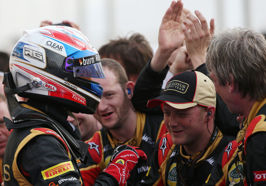 Romain Grosjean viszont annál inkább szárnyalt a boldogságtól a dobogó harmadik fokának megszerzését követően