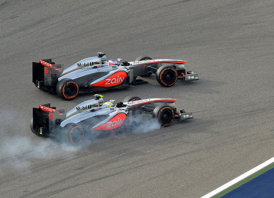 A 23 éves Perez és a 33 éves Button Bahreinben az 5. helyért csatáztak, a könyöküket is gyakran kitéve, végül Perez végzett az előkelőbb helyen, a 6. pozícióban, mert Buttonnak a magas gumiabroncs-kopás miatt ismételten ki kellett állnia kereket cserélni, így pedig végül csak a 10. helyen ért célba.