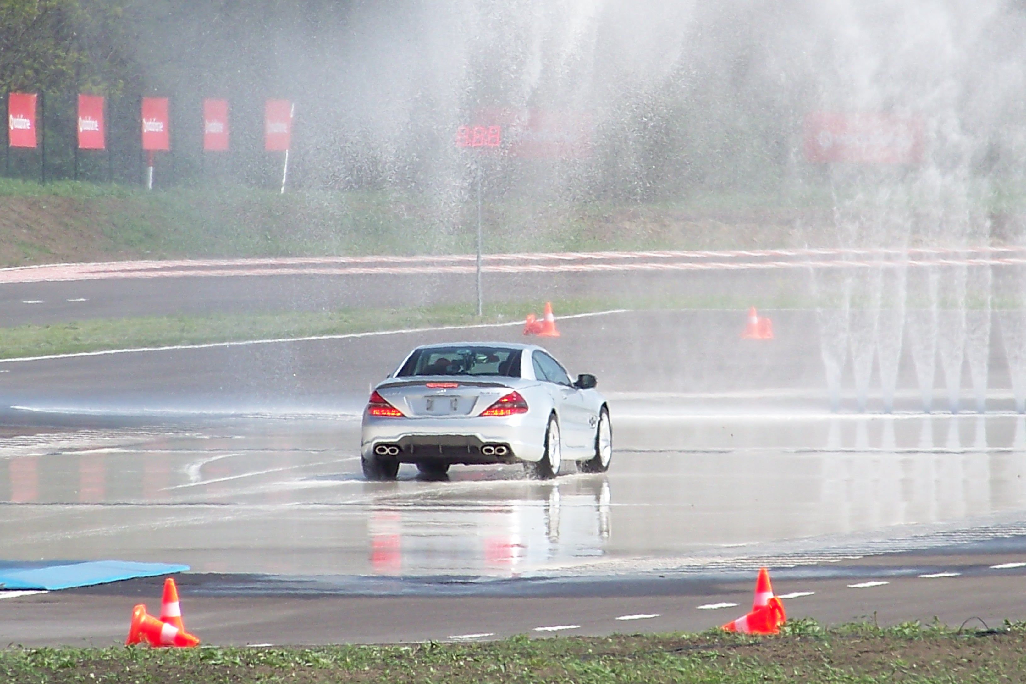 Az esemény felvezetéseként Herczig Norbert raliversenyző tett két gyors kört a vezetéstechnikai pályán, bemutatva a különböző útfelületeken történő száguldozás kockázatait, illetve azt, hogy milyen sokat számít a biztonság szempontjából a vezetői rutin. Utána Jenson Button ült a volán mögé, akit a pályán tapasztalt esős terepviszonyok természetesen nem tudtak zavarba hozni. A nagy dinamikus rántópadon a jeges és nedves útfelületen bemutatott fékezési és kikerülési manőverek közben megcsúszó és kifaroló kocsi fölött könnyűszerrel nyerte vissza az uralmat.