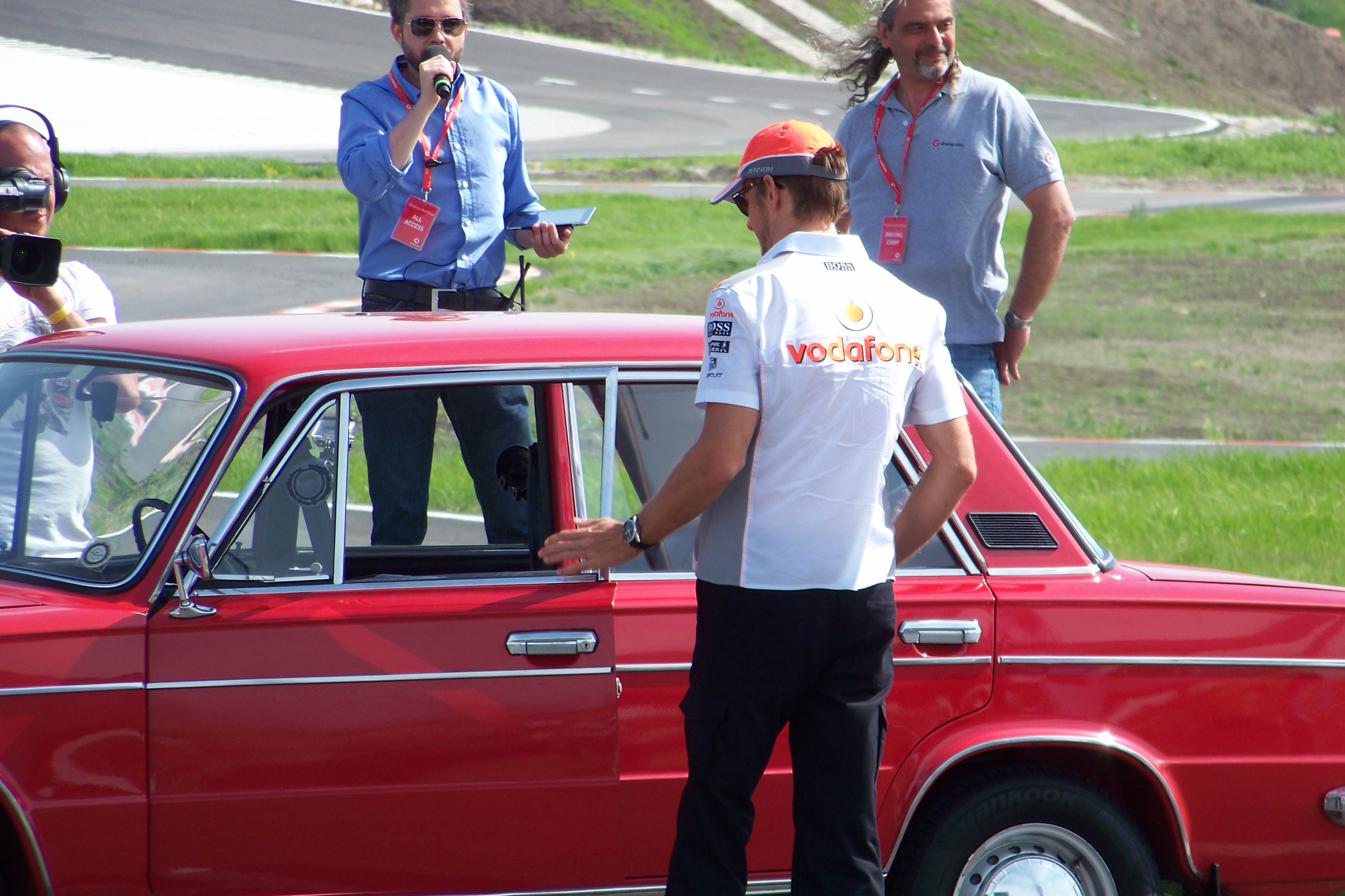 A hazánkba látogató világbajnok pilóta a Vodafone Red Show-n, a Driving Camp vezetéstechnikai központban tartott eseményen, Herczig Norbert raliversenyző és a női és férfi vízilabda válogatott tagjainak segítségével mutatta be a május 2-től kibővülő Vodafone Red szolgáltatáscsomagot, a Red-et. Jenson Button a Vodafone Protect mintájára, amely a mobilozókat védi meg a rájuk leselkedő váratlan helyzetektől, az autósok számára hasznos és fontos trükköket demonstrált és magyarázott el a nézőknek annak érdekében, hogy ők is kihasználhassák a biztonságos vezetésben rejlő végtelen lehetőségeket.
