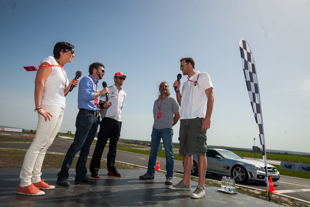 Az esemény felvezetéseként Herczig Norbert raliversenyző tett két gyors kört a vezetéstechnikai pályán, bemutatva a különböző útfelületeken történő száguldozás kockázatait, illetve azt, hogy milyen sokat számít a biztonság szempontjából a vezetői rutin. Utána Jenson Button ült a volán mögé, akit a pályán tapasztalt esős terepviszonyok természetesen nem tudtak zavarba hozni. A nagy dinamikus rántópadon a jeges és nedves útfelületen bemutatott fékezési és kikerülési manőverek közben megcsúszó és kifaroló kocsi fölött könnyűszerrel nyerte vissza az uralmat.