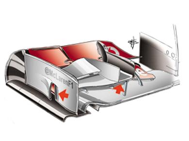 Az idei szezonban eddig csak küszködő McLaren egy teljesen új aero csomagot készített az MP4/28-as versenyautójához Barcelonára. Az új aerodinamikai csomag egyik legfontosabb eleme pedig az új első vezetőszárny volt. Az új szárnyal azonban péntek délután csak Sergio Perez tett meg néhány kört a pályán. A McLaren az új első vezetőszárnyán megváltoztatta a véglapok alakját, ahol ezentúl már csak egy függőleges nyílás található, valamint a wokingi mérnökök újratervezték a szárny felső fékszárnyát is. A McLaren egyébként az új első szárny mellett új oldaldobozt, kipufogó rendszert, hátsó szárnyat, diffúzort és egy Williams stílusú fékcsatornát is magával hozott a Spanyol Nagydíjra.