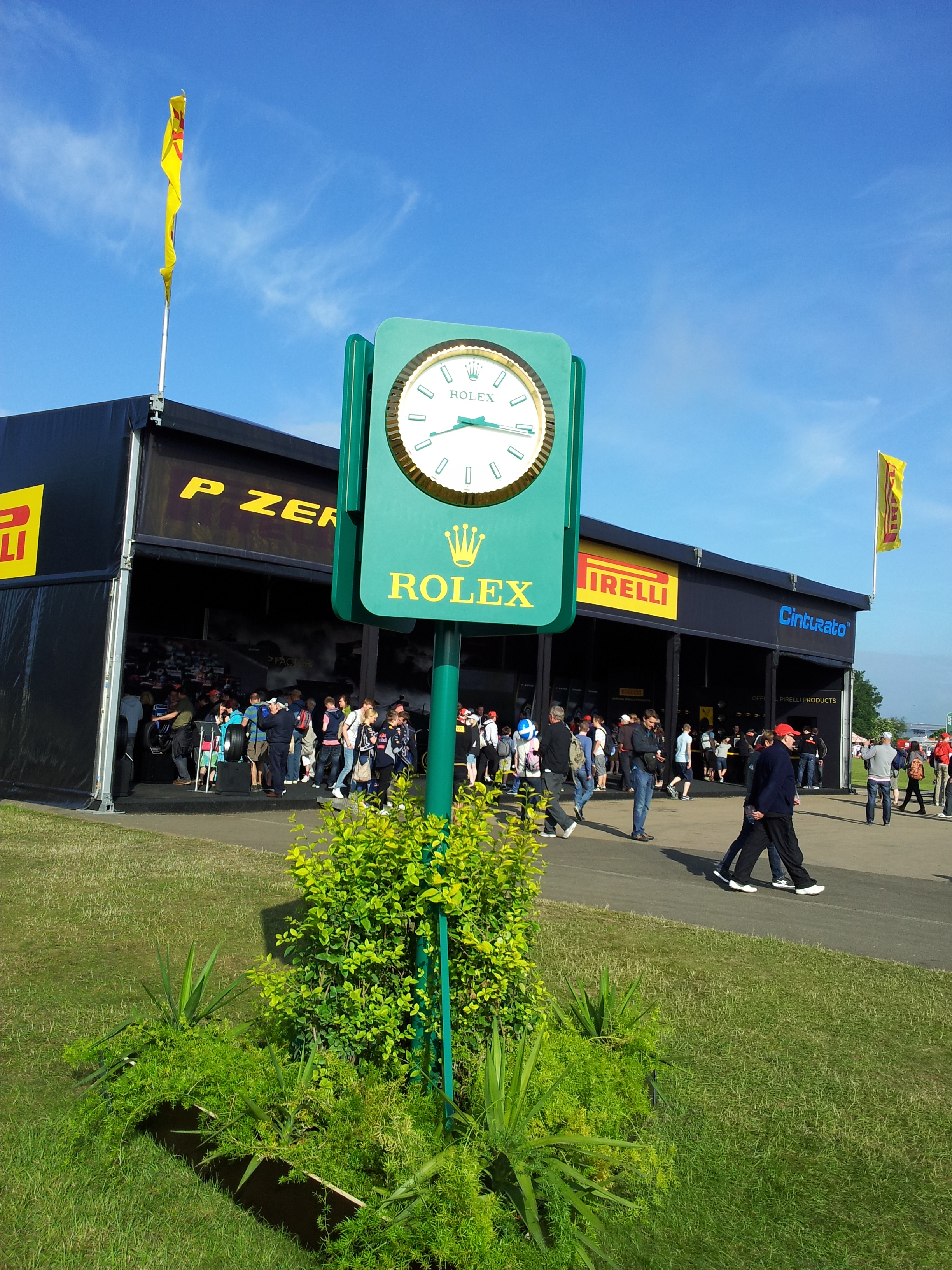 A rajongók is szép számmal jelen vannak már, a nézőszám növelését valószínűleg nagy mértékben segítette Lewis Hamilton pole-pozíciója is. Rengetegen hemzsegtek már a hivatalos Formula 1 üzletek és a szórakozást nyújtó McLaren szimulátor és Pirelli stand környékén. Júniusban eperszezon van Angliában és ilyenkor, a wimbledoni teniszturné idején, lehet a legfinomabb gyümölcsöt vásárolni. Ebben Silverstone sem marad el, viszont eléggé merész dolog 4-5 darab tejszínes eperért 3 fontot (valamivel 1000 forint fölötti árat) elkérni. Egy kis palack vizet 2 fontért (690 forint) árulnak, amelyet bizony normális esetben 1 font (345 forint) alatt meg lehet venni a boltokban. Igaz, alternatíva is van - egy nem éppen higiénikusnak kinéző vízcsap. Ne feledjük, az F1 a luxust megtestesítő sportág...