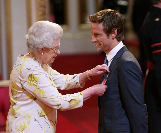 24. Button 2010-ben találkozott a brit Királynővel, amikor átvette tőle MBE (Brit Birodalom Érdemrendje) kitüntetést, miután 2009-ben megnyerte a világbajnokságot. Úgy jellemezte őfelségét, mint az "F1-ről meglepően jól informált" személyiséget. A Királyné meg is jegyezte a pilótának: "Fogalmam sincs, hogyan képes olyan nyaktörő sebességgel száguldozni körbe-körbe"