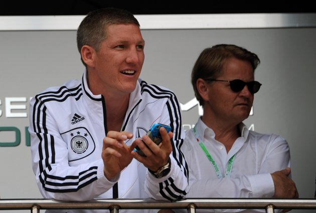 A német válogatott Bastian Schweinsteiger (Bayern) a Mercedes csapatát látogatta meg