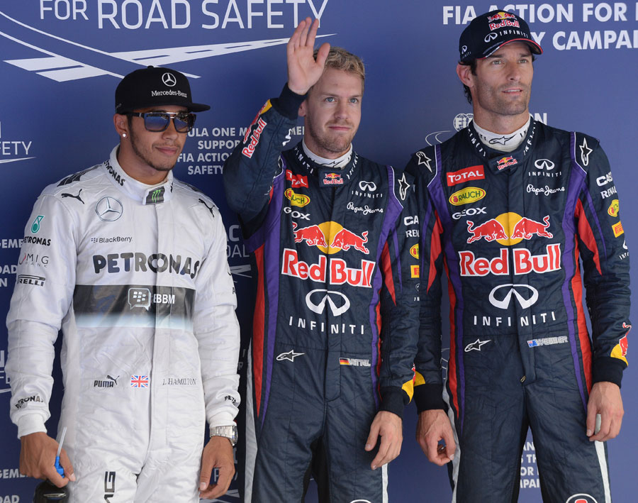 A szabadedzések alapján azt lehetett feltételezni, hogy a Mercedes megnehezítheti a Red Bull dolgát legalább az időmérő edzésen. Végül Sebastian Vettel harmadik etapban futott első, 1:37.202-es körével 0.308 másodperces előnybe került a Mercedes pilótája, Lewis Hamilton előtt.