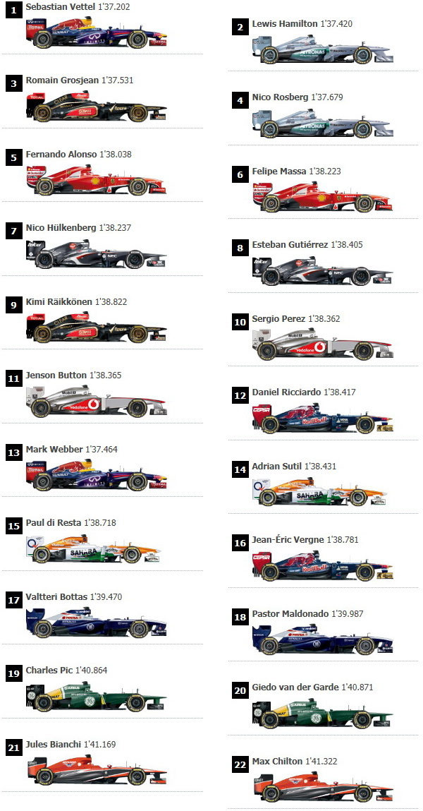 | 4 | Romain Grosjean | Lotus | 1:37.531 | 14 |