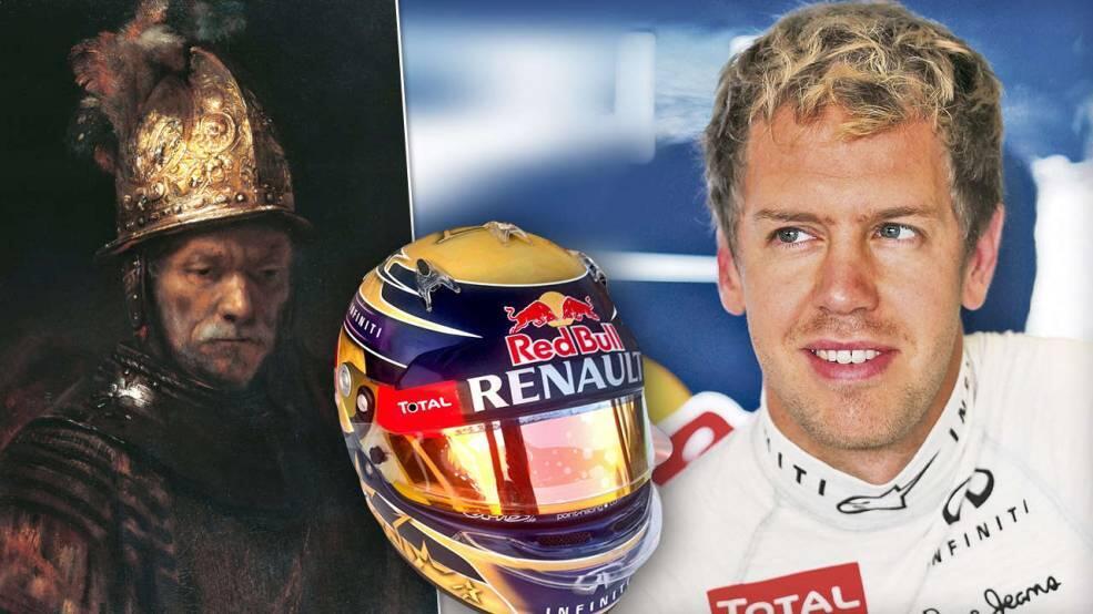 A sisakon feltűnő arany levelek még drágábbá teszik a sisakot Vettel számára, aki a pletykák szerint öt millió euró bónuszt kapott azért, mert bajnoki címet szerzett?