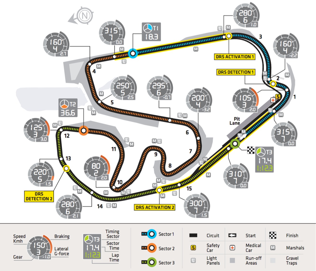Első alkalommal fordult elő, hogy a Brazil Nagydíjra nem egy, hanem két DRS-zónát jelöltek ki az illetékesek. A DRS 2011-es bevezetésének évében, és tavaly is a 3-as (Curva do Sol) és a 4-es kanyar közti hosszú egyenesben használhatták a versenyzők az állítható hátsó szárnyakat, míg az érzékelési pont a kettes kanyarban található.