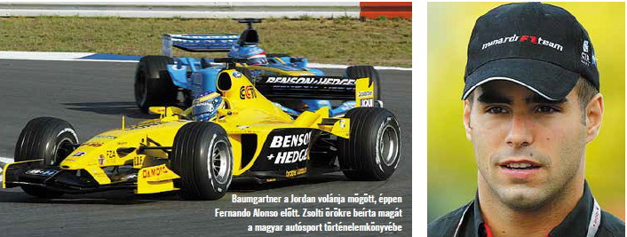 Aki ott volt 2003-ban a Hungaroringen, az nem felejti el azt a napot, amikor Ralph Firman kirepült a szabadedzésen, és egyszerre felbolydult a paddock: az akkor már a Jordan csapatnál hivatalos tesztpilótai státuszban lévő magyar versenyző, Baumgartner Zsolt hazája nagydíján debütálhat. Az 1981. január 1-én, Debrecenben született Baumgartner a tehetős Renault-kereskedő édesapa és akkorra már Frank Tamás támogatásával szép lassan gyűjtögette a kisebb-nagyobb eredményeket a nemzetközi porondon. Nevétől sosem volt visszhangos a sajtó, és bár a F3000-ben még a Prost fiókcsapatánál is megfordult, nem halmozta egyik sikert a másikra. Ãm Frank Tamás menedzseri pályafutásának nagy lehetőséget látta meg Baumgartnerben, elvégre Kesjár Csaba halála után Zsolt volt az első, aki egyáltalán meg tudott jelenni a nemzetközi porondon. És 2003 augusztusában ő is ott állt a nagy lehetőség kapujában. Miután az iszonyú becsapódás után Firmant a FIA-orvosok eltiltották a további, hétvégi versenyzéstől - Frank beindította a gépezetet. Megszerezte a csapatvezetők beleegyezését, Max Mosley pedig hogyne adta volna áldását a bevetésre, miután Bernie Ecclestone - akivel Frank amúgy is jó viszonyt alakított ki - természetesen megszimatolta Baumgartner bevetésében a szenzációt és a pr-t. Ãgy történhetett, hogy a F1 históriájában első magyarként Baumgartner Zsolt elindulhatott Magyar Nagydíjon, ahol ugyan kiesett, de még ott volt Monzában is, ahol szépen behozta a Jordant a 11. helyen. A siker és főleg a lelkes sajtóvisszhang után Frank ezer százalékkal elkezdett dolgozni azon, hogy Baumgartner 2004-ben egy teljes szezonra kapjon szerződést. Előbb úgy tűnt, hogy lesz egy nagy (félig állami) szponzoruk a MOL képében, de az olajcég végül kihátrált a buliból - így maradt az az opció, hogy a Baumgartner Baráti Kör gyűjtése, és további kisebb szponzorok nyomán mégis összejöjjön egy Minardi-ülésre való pénz. Baumgartner Gianmaria Bruni olasz pilóta párjaként a mezőny leggyengébb csapatával küzdött végig egy szezont. Egy elég gyenge kezdés után a Monacói Nagydíjtól megemberelte magát, a hercegségben épp csak lemaradt a pontszerzésről. Ami viszont csodaként mégis bekövetkezett Indianapolisban, ahol az utolsó körökben Fisichella defektje miatt feljött a 8. helyre, és ezzel begyűjtött 1 pontot. Ez maradt egyetlen komoly eredménye, mivel Paul Stoddart, a Minardi ausztrál tulajdonosa szimpátiája ellenére sem tartotta meg a magyar fiút 2005-re. Kapcsolatuk azóta is baráti, Baumgartner rendszeresen vezeti különböző bemutatókon Stoddart kétüléses versenygépét. De a Forma-1-re olyan nagy benyomást nem tett, hogy más csapatok kaptak volna utána - ráadásul a magyar cégek sem láttak benne olyan reklámértéket, hogy kifizették volna a szerződtetéshez szükséges összeget" Egy biztos, Zsolt szereplése utáni tíz évben sem sikerült senki magyar pilótának még csak a F1 közelébe sem jutnia.
