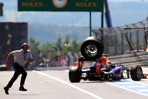 "Tárgyalás folyt róla, de nem került bevezetésre. Azt hiszem ez rossz lépés lenne és nem érzem úgy, hogy bármit elérnénk vele. Úgy vélem a Mark Webber autójáról a Nürburgringen leváló kerék sok megbeszélést indított el. Mindenki próbál gyors lenni, de nem hiszem, ha bevezetnénk a kötelező minimális kerékcsere időt, az változtatna bármin is. Továbbra is gyorsan cserélnének kereket és a hátralévő időben az autó csak állna a szerelők előtt."