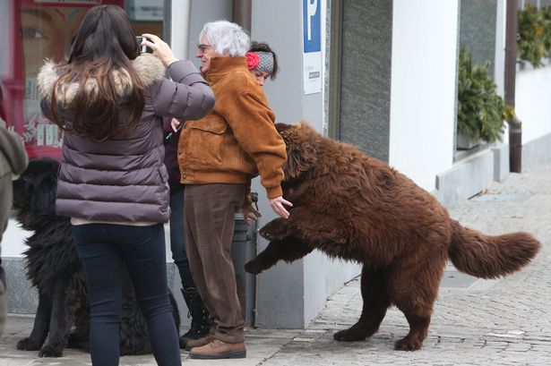 Egy fotóriporter épp a megfelelő pillanatban kattintott egyet, így lencsevégre kaphatta, amint a Formula-1 mindenható urát, Bernie Ecclestone-t játékosan megbillenti egy hatalmas újfundlandi a svájci Gstaadban.