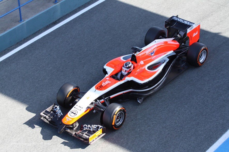 Az autó Max Chilton irányítása alatt gördült ki a pályára az első installációs körére. Holnap bizonyára az istálló másik versenyzője, Jules Bianchi is kipróbálhatja majd a csapat új kihívóját.
