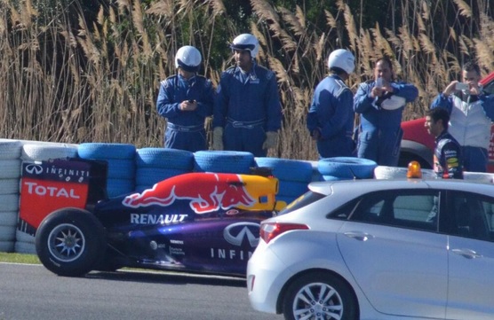 Ezzel tovább folytatódott a Red Bull vesszőfutása: a címvédő csapat az első két napon mindössze 11 kört tudott megtenni, hogy tegnap délután némi füst kíséretében érjen dicstelen véget a négyszeres bajnok Vettel első idei fellépése. Daniel Ricciardo ma két perc híján három ára elteltével hagyhatta el először a garázst, de csupán fél kör jutott neki, mielőtt az autó megállt volna - egy órával később Ricciardo visszatért a pályára, s három kört tett meg.