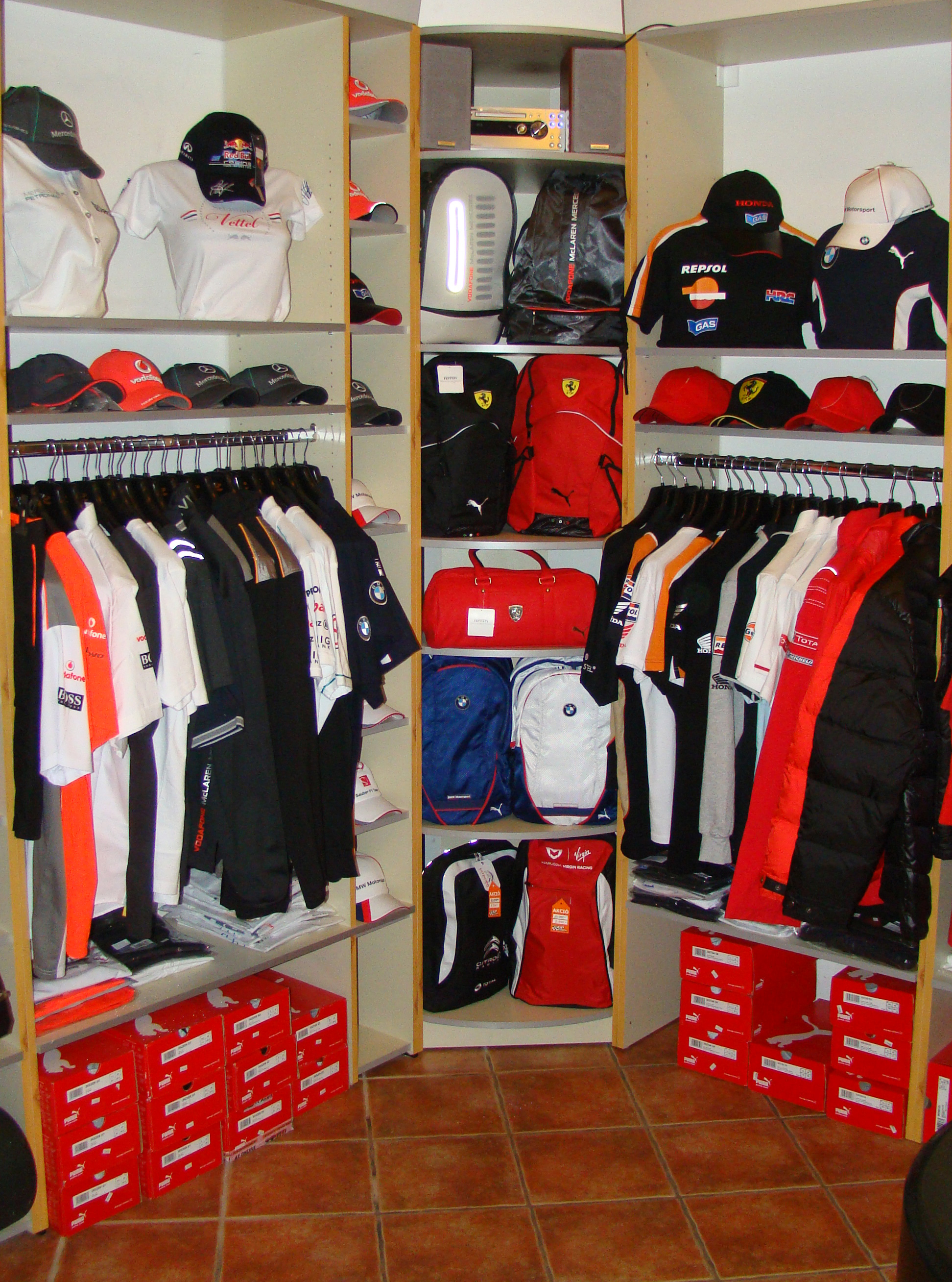 Akadnak termékeink azoknak, akiket a pár ezer forintos, apró kiegészítők érdekelnek, mint kulcstartó, bögre, egészen azokig, akik a ruhatárukat szeretnék felfrissíteni. Számukra a legnagyobb értékű termékek a cipők, táskák, pulóverek, kabátok, amik akár több tízezres tételt is jelenthetnek. Ugyanakkor találkoztam már egész extrém dolgokkal is, például ötven centiméteres Schumacher mellszoborral, McLaren papírsárkánnyal (műanyagból) vagy ferraris tapétával. A legújabb különlegességünk a Hajsza a győzelemért című film BluRay-en és DVD-n.