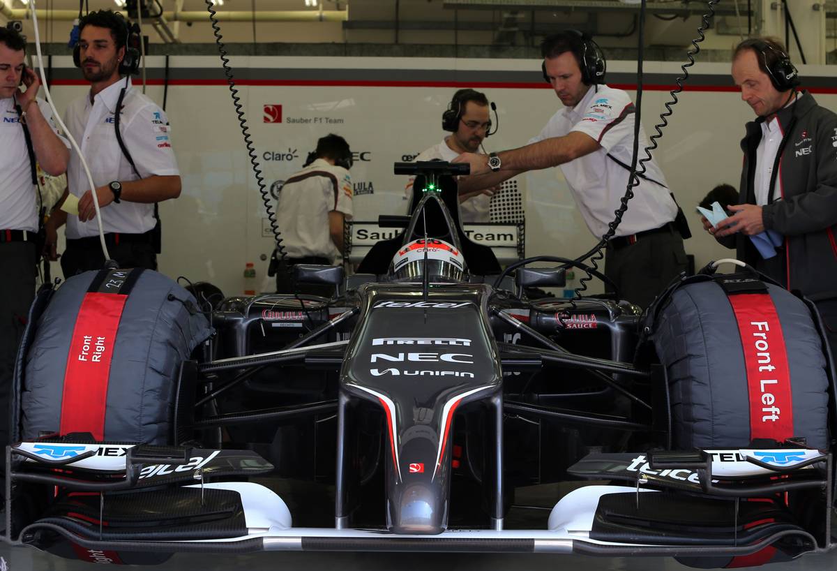 Míg az előző három nap során az aktívabb csapatok közé tartozott, a Sauber autója szombaton három órával a teszt vége előtt még mindig nem dugta ki vékony orrát a garázsból. Az istálló Twitteren adott információt a késlekedés okáról.