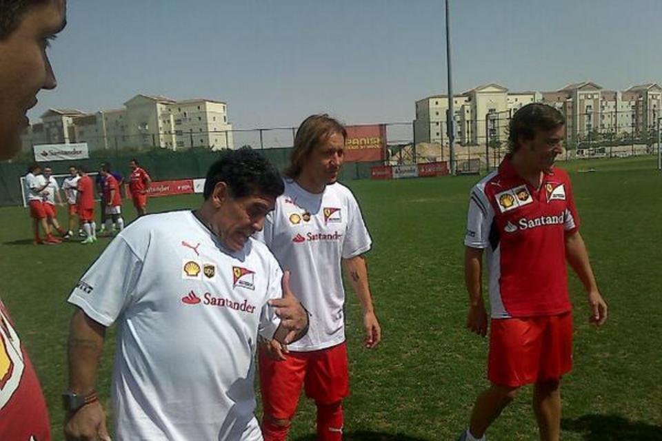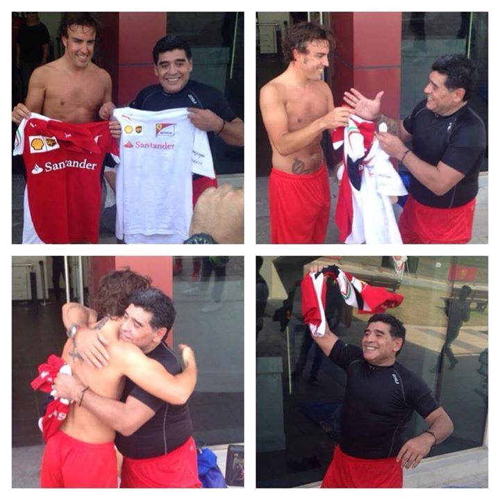 A nap végén pedig Alonso a Dubai Labdarugó Akadémiára volt hivatalos, ahol a másik kedvenc sportágának egyik legendájával, Diego Armando Maradonával és a Real Madrid játékosával, Michel Salgadóval volt alkalma együtt rúgni a bőrt. Ez alkalommal azonban Alonso kénytelen volt meghajolni az aranyifjú argentin előtt, ha nem sokkal is, de egy góllal veszítve 5-4-re."