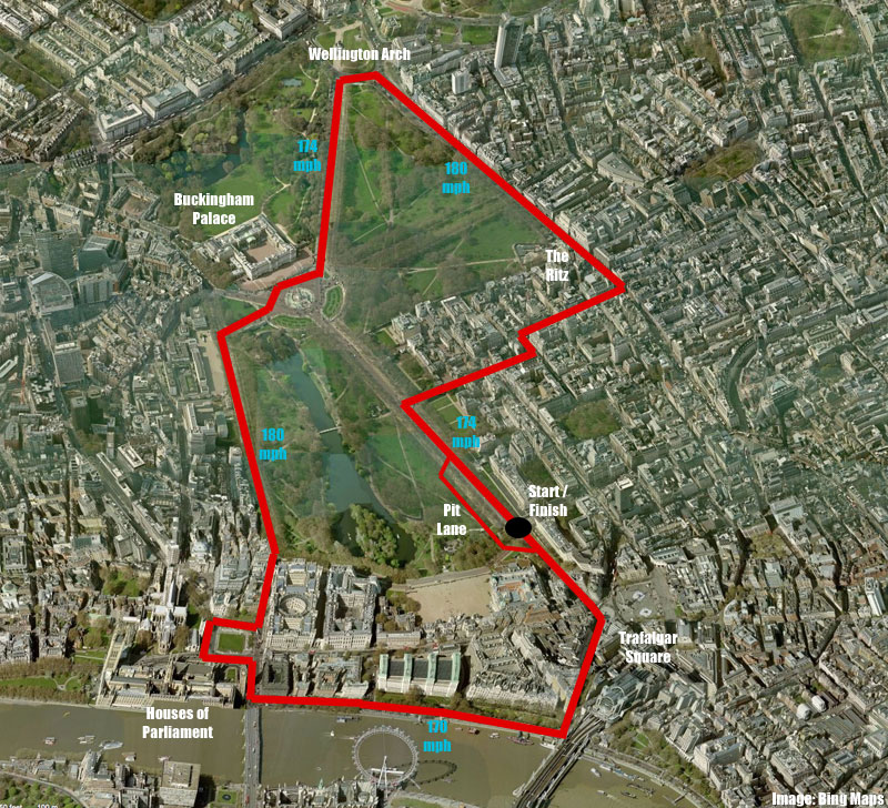 Az előzetes tervrajz szerint az F1-es pálya vonalvezetése olyan híres építmények és helyek mellett haladna el, mint a Big Ben, a Trafalgar tér és a Buckingham Palota.