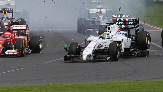 Az Omnicorse által közölt fotó pontosan erről tanúskodik. A fékhibája miatt Felipe Massát hátulról eltaláló Kamui Kobayashi Caterhamje beleakadt a Williams diffúzorába, és megemelte azt. Az FW36-os körülbelül harminc centivel emelkedett fel a betonról, ez azonban nagy sebességnél jelentősen komolyabb emelkedést is eredményezhet, s az első autó diffúzora a hátulsó versenyző fejét is eltalálhatja...