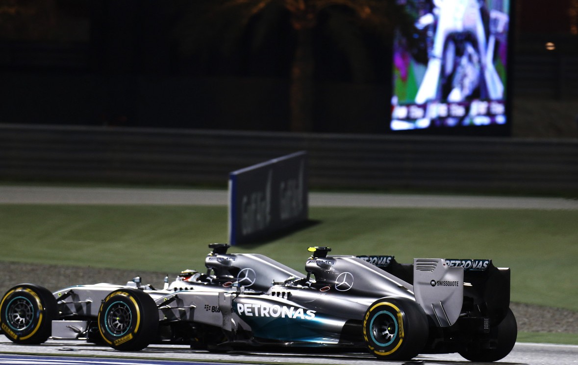 A német már az első kerékcserék előtt is támadásokat indított a vezető helyért, de Hamiltonnak mégis az utolsó etapban kellett leginkább aggódnia, hiszen a lassabb gumikon kellett védekeznie a Safety Car miatt mögé felzárkózó Rosberg ellen.