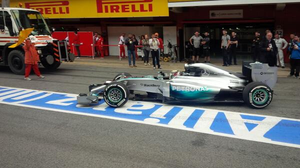 A tesztnap délelőttjén a mezőnyt vizes pálya fogadta, majd az eső is rákezdett, intermediate gumikon pedig ekkor Lewis Hamilton jegyezte a legjobb időt. A szervezők az ebédszünetet egy órával előrébb tolták, hogy délután a száraz pályán több időt tölthessen gyakorlással a mezőny.
