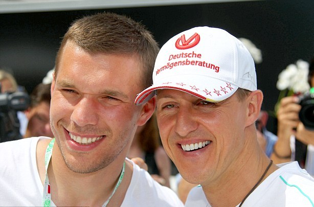 A Portugália elleni világbajnoki csoportmeccs hajrájában beálló Lukas Podolski Michael Schumachernek ajánlotta a Nationalelf megsemmisítő, 4-0 arányú győzelmét, miután tegnap hivatalosan is kiderült, hogy nincs már kómában a hétszeres világbajnok. A 115-szörös válogatott labdarúgó így nyilatkozott a meccs után: "Jó barát, jó ember, és megőrül a fociért. Talán látta is a meccset, vagy legalább tud az eredményről."
