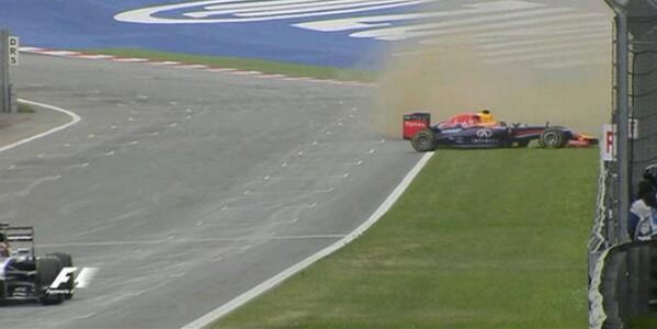 Szinte nem volt olyan versenyző, aki ne hagyta volta el a pályát valamelyik kanyarkijáratnál egy rövid időre - különös veszélyzónát jelentett a 8-as, illetve a célegyenesre fordító 9-es kanyar. Utóbbiban mindkét Red Bull meleg pillanatokat élt át. Először a szélesen beforduló Sebastian Vettel autóját dobta meg egy huppanó, akinek autója két pörgést is bemutatott, de mégis sikerült elkerülnie a fallal való találkozást, így folytathatta útját. Pár perccel később Daniel Ricciardót is megtréfálta a kanyar, ám ő nagy nehézségek árán még meg tudta fogni az autót.