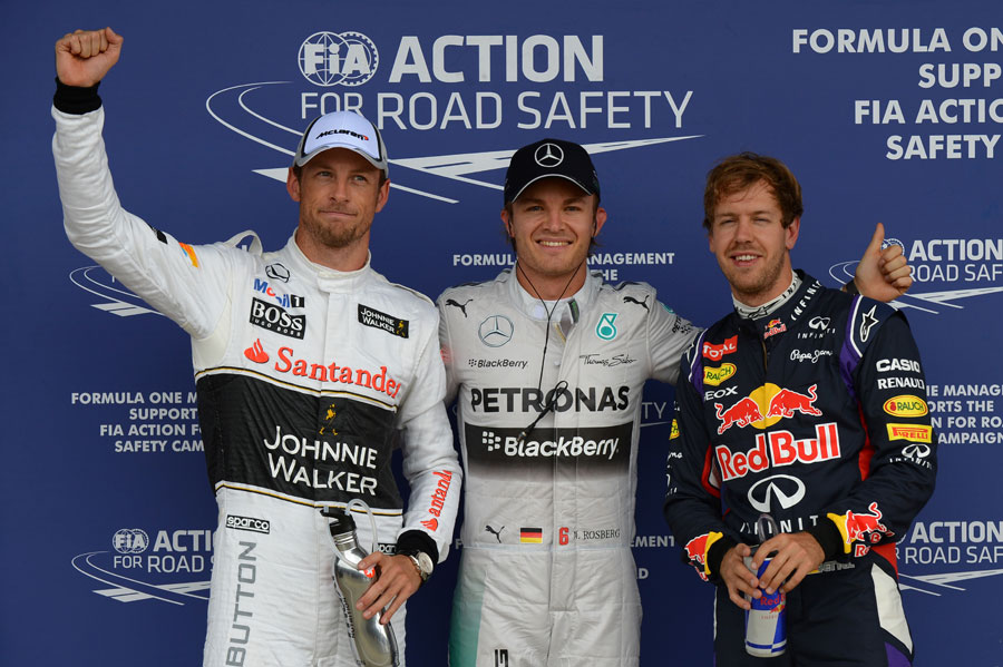 Jenson Button a 2012-es Brazil Nagydíj óta először végzett kvalifikáción a legjobb három között. "Ahogy ti, én sem hiszem el" - kommentálta a váratlan sikert. "Tudom, hogy ez csak egy időmérős harmadik hely, de az utolsó 18 hónapban esélyünk sem volt ilyenre. Az egész időmérő során megvolt a tempónk. Kicsit megkönnyítettem a dolgom a versenyen, de reálisnak kell maradnunk. Harcolni akarok a dobogóért, ami lehetséges, ha az időjárás ugyanolyan marad, mint ma."