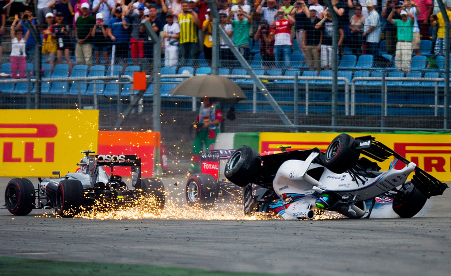 A mezőny ezúttal az első kanyart sem vészelte át baleset nélkül, méghozzá a rajtrács elejéről tűnt el két részvevő. Rosberg és Bottas eljöttek egymás után az első sorból, a mögülük induló Felipe Massa és Kevin Magnussen azonban összeakadtak az egyenes végén. A brazil haladt a külső íven, míg a McLaren pilótája a kanyar belsején már mellé ért, Massa azonban ezt nem láthatta, így a két autó összeakadt, és a Williams szaltózva kirepült a bukótérbe. Végül a kerekein állt meg és a brazil sértetlenül szállt ki, ám érthetően frusztrált volt, amiért zsinórban második futamán keveredett balesetbe már az első körben. Az esetet a versenybírók rövid idő alatt versenybalesetnek nyilvánították, és senkit nem sújtottak büntetéssel. Magnussen egy bokszkiállás után továbbhaladt, és a Massát kikerülni kénytelen Daniel Ricciardo is visszaesett a mezőnyben.
