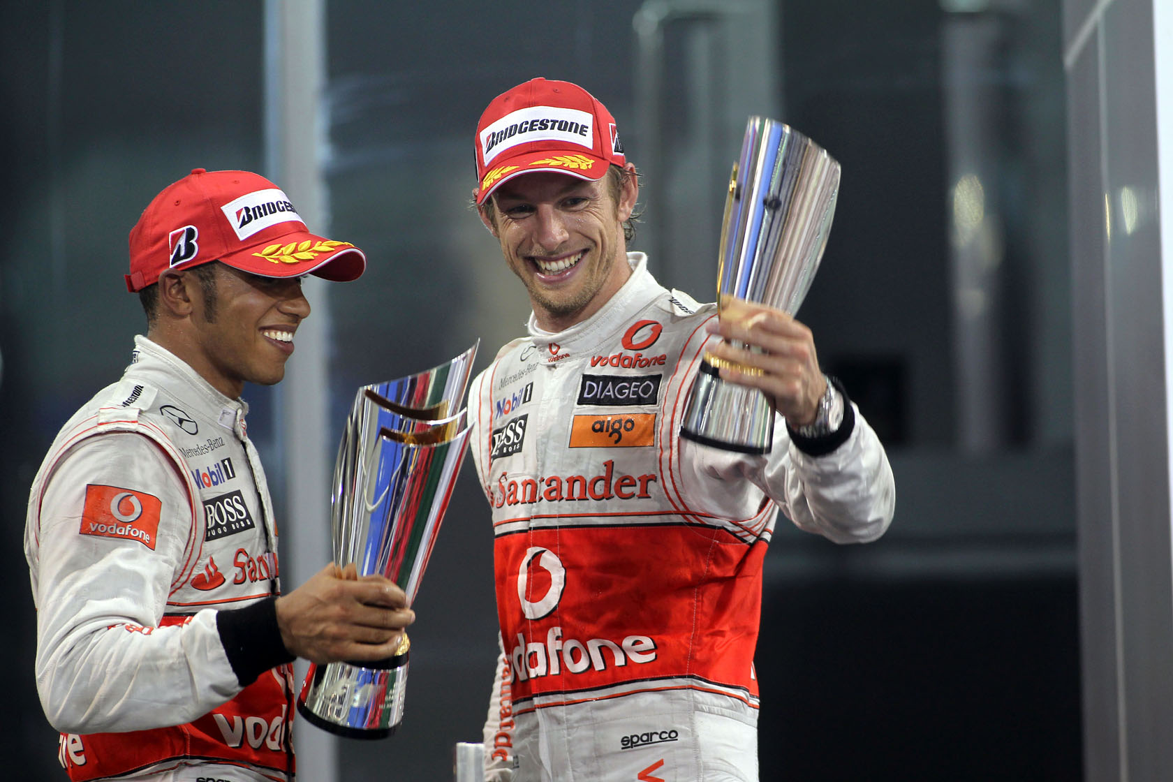 Több mint húsz évet kellett várni arra, hogy két világelső ismét ugyanazért a csapatért nyomja a gázt. Ezúttal Hamilton volt a gárda megszokott tagja, aki 2008-ban a bajnoki címet is visszahozta a McLarennek, Jenson Button a szenzációs Brawn GP-vel nyert 2009-ben. A Brawnból Mercedes lett, Button pedig Hamiltonhoz csatlakozott. Most először történt meg, hogy az előző két év két bajnoka szolgált ugyanannál a csapatnál, és ugyancsak ez volt az első alkalom, amikor az együttműködés egy évnél tovább tartott. Ráadásul rögtön három szezonon keresztül, amelyek során a két versenyző hasonló teljesítmény nyújtott: Hamilton negyedik, ötödik, negyedik, Button ötödik, második, ötödik helyen zárta az idényeket, előbbi tíz, utóbbi nyolc versenyt nyert ezalatt.