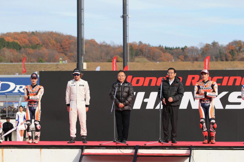 A Honda Racing Team szokásos szezon végi rendezvényén a McLaren-Honda spanyol versenyzője, Fernando Alonso kipróbálta a márka MotoGP gépét.