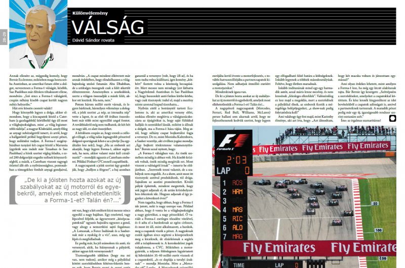 Már kapható Magyarország motorsport magazinjának legfrissebb száma, benne a Formula-1-es csapatokra az elmúlt hetekben lesújtó pénzügyi válság részletes elemzésével. Van visszaút a méregdrága motorok és a fizetős pilóták fogságából?