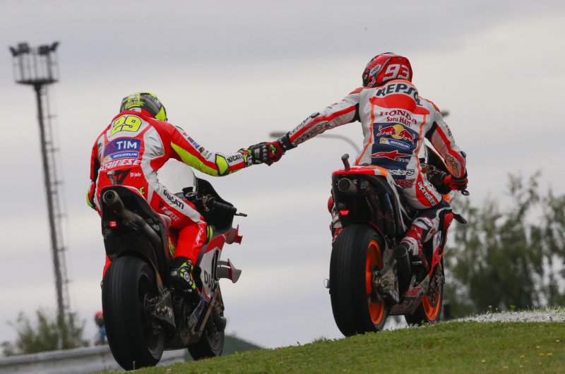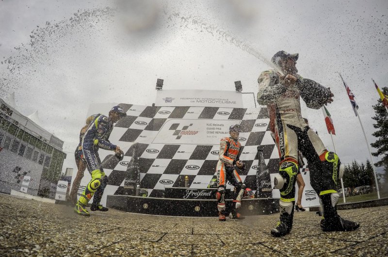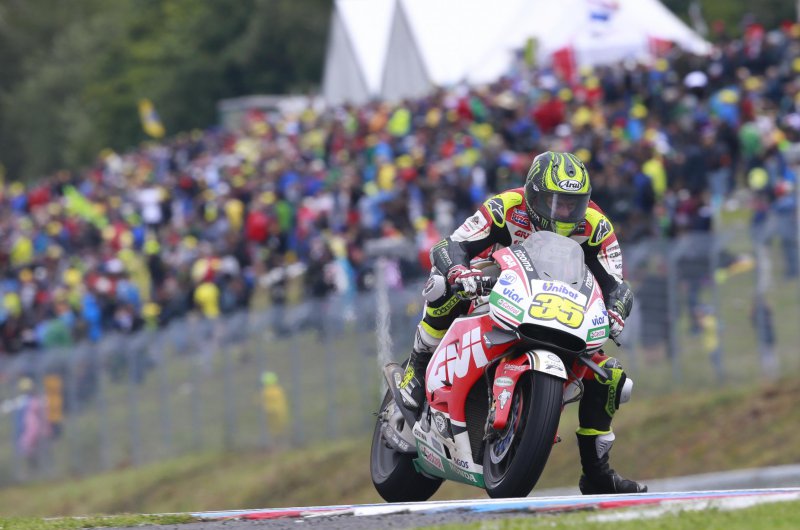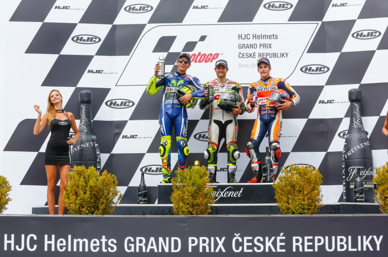Vizes, ám mégis folyamatosan száradó pályán került sor a királykategória Cseh Nagydíjára, ám a várakozásoknak megfelelően roppant változatosan is alakult. A győzelmet végül a keményebb esős gumikra szavazó Cal Crutchlow gyűjtötte be: a brit karrierje első sikerét aratta a MotoGP-ben. Fotók: motogp.com