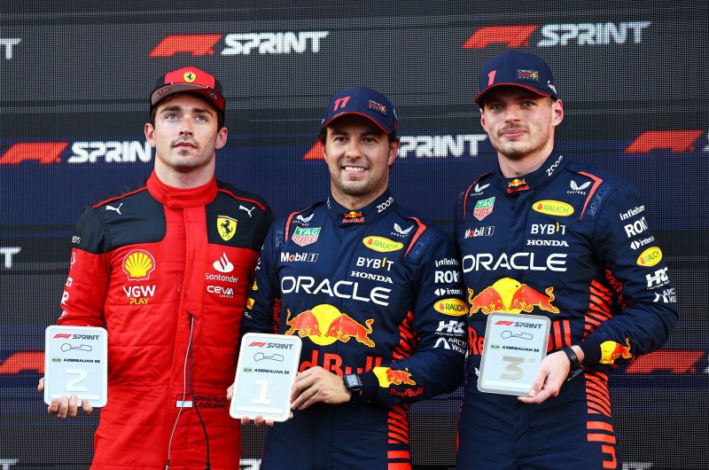 A pole-ból rajtoló Leclerc-nek csak a dobogó alsó foka jutott a két Red Bull mögött, Verstappen rosszul időzített kiállásával bukta el az első helyet Azerbajdzsánban, ahol a táv első harmadára jutottak az izgalmak.