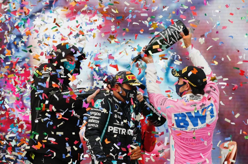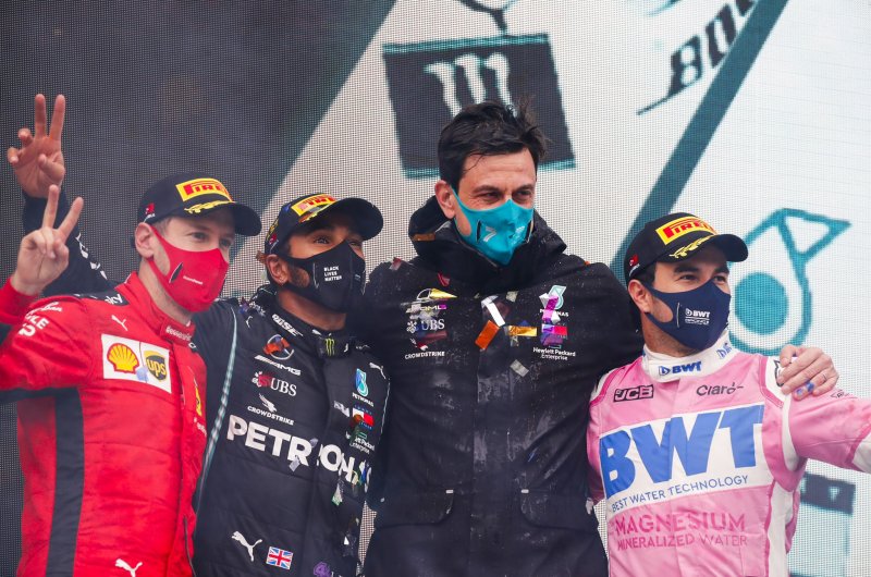 Sokáig Stroll vezetett Perez előtt a Török Nagydíjon, a Racing Point kettős sikere helyett azonban Hamilton szerezte szezonja 10. győzelmét, amellyel a vb-cím sorsát is eldöntötte. Dobogóra állt Perez és Vettel a szenzációs és megjósolhatatlan Török Nagydíjon. Fotók: csapatok.