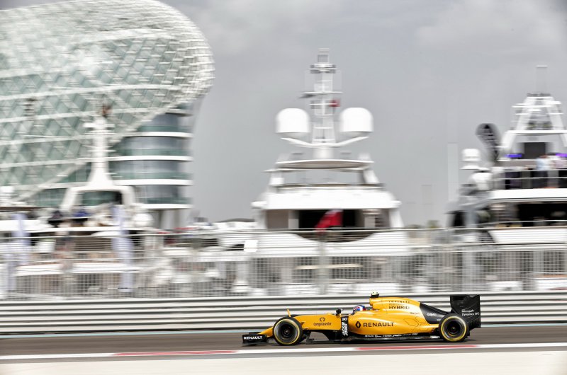 A bajnokságban hátrányban lévő brit érte el a legjobb köridőt az F1-es Abu Dhabi Nagydíj nyitó edzésén, miközben az összetettbeli éllovas Nico Rosberghez a Red Bullok is viszonylag közel kerültek.