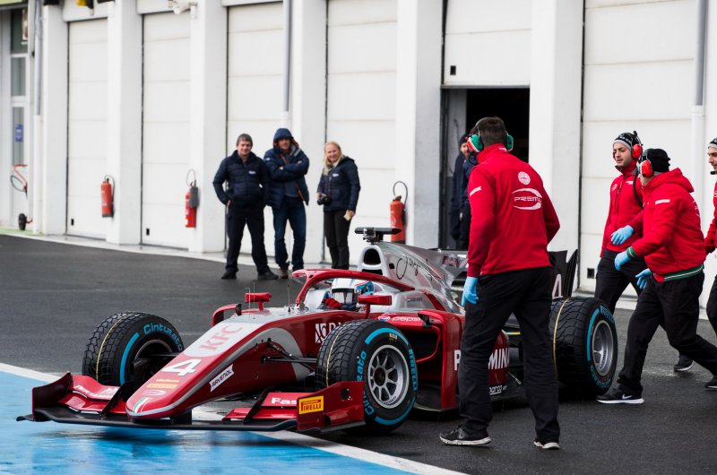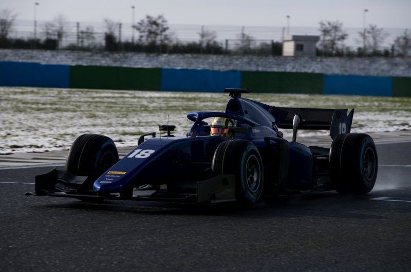 A Formula-2 új generációs, 3,4 literes V6-os turbóval felszerelt autóit csak január végén vették át a csapatok. A versenygépek (minden istálló egy-egy autóval) először Magny-Cours-ban gurultak pályára. A francia helyszín aszfaltja nedves volt a nemrég elolvadt hótól, a pálya szélét, különösen a füves zónákat pedig még havas takaró borította.