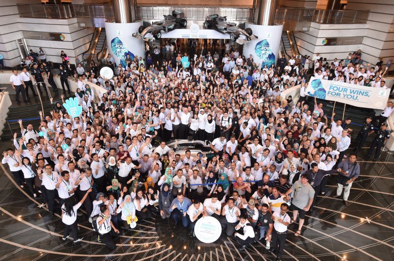 A Mercedes immár négyszeres Formula-1-es világbajnoka a Petronas főhadiszállásán, Kula Lumpurban is megünnepelte idei sikerét.