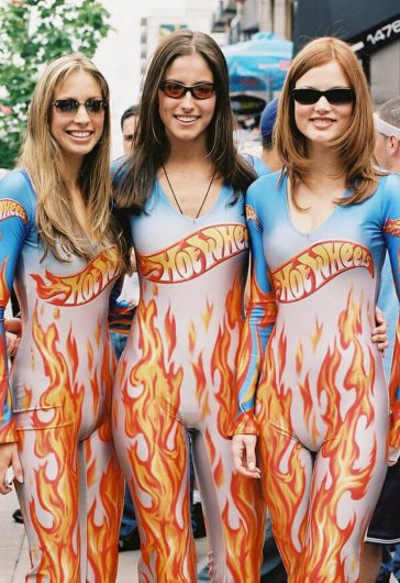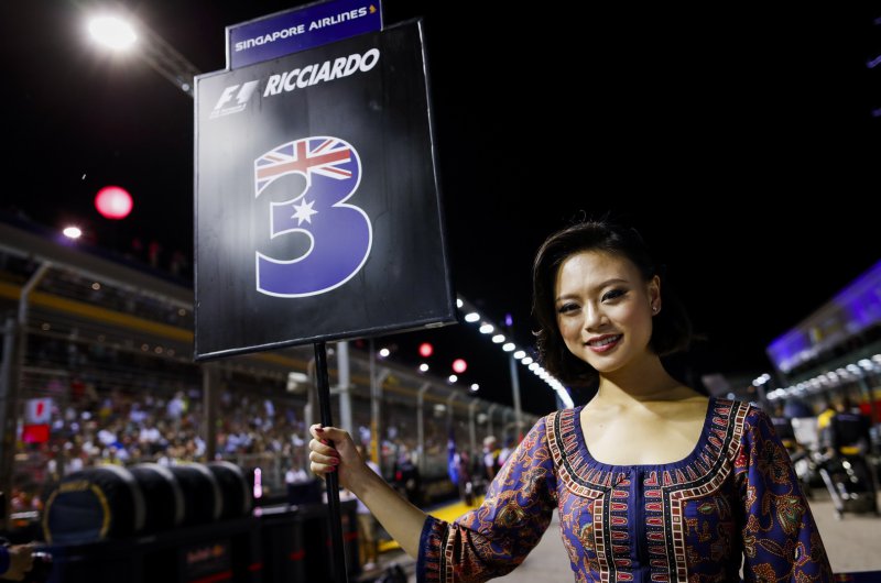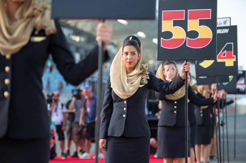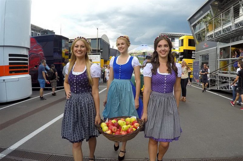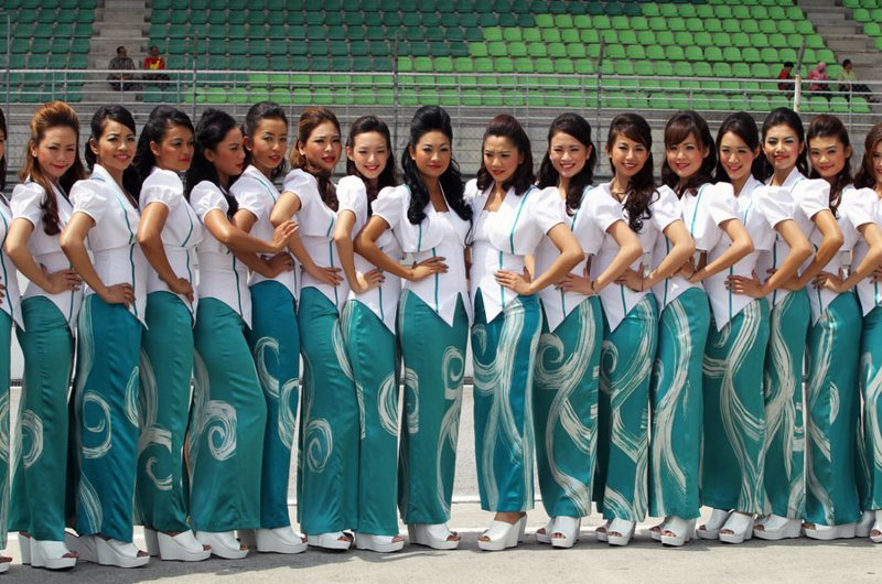 Különleges öltözetű F1-es rajtrácslányok